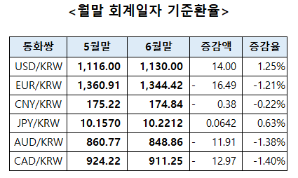 ○ 6/30 매매기준율: 1,130.00원 / 거래량: 약 75.3억불