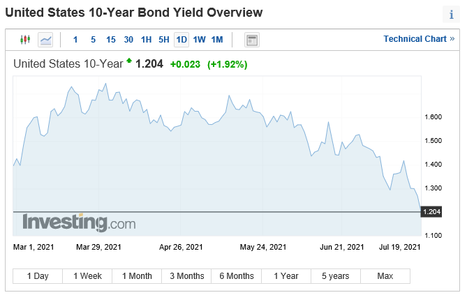 - 美 국채 10년물은 장중 1.174%까지 하락하며 올해 2월 이후 최저치를 경신.