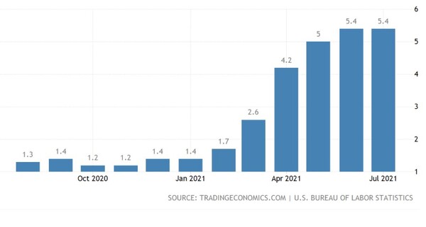 - 7月 CPI(전년 比) : +5.4% / 월가 컨센 +5.3% / 전월 수치 +5.4%