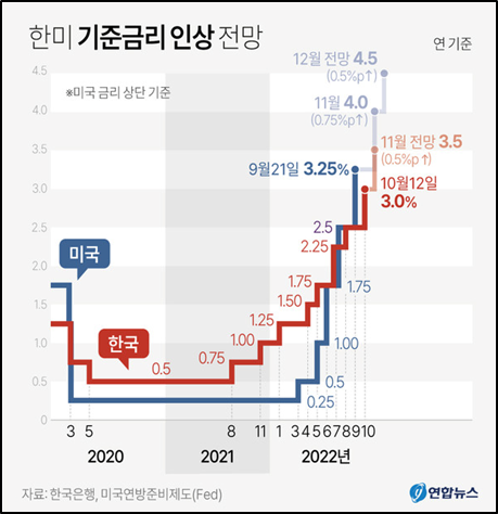 - 한국은행의 빅스텝(50bp 금리인상)과 관련해서는 "금리 인상 기대가 선반영되며 이에 따른 금융시장 영향을 제한적"이라고 진단했음. 그러면서 "13일(목) 밤 미국 9월 소비자물가지수(CPI) 발표와 11월 초 美 연방공개시장위원회(FOMC)의 금리 결정 등 해외發 불확실성이 여전해 경계 태세를 한치도 늦출 수 없는 상황"이라고 강조했음.