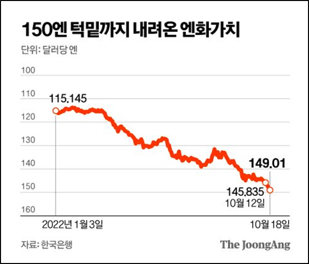 - 엔화 가치가 32년 새 최저치로 추락하면서 일본의 통화위기가 총체적 붕괴로 치닫고 있다는 분석이 나왔음.