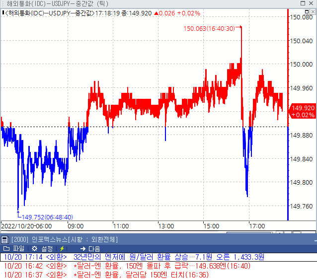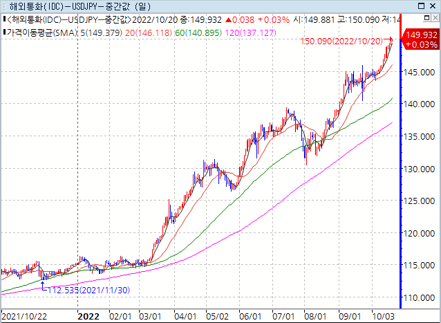 온다온다 했는데 결국 왔다. 달러엔 150. 터치 후 급락하긴 했으나 다시 되돌리고 있기에 특별한 이벤트가 없다면 상승 추세가 꺾이긴 어려워보인다.
