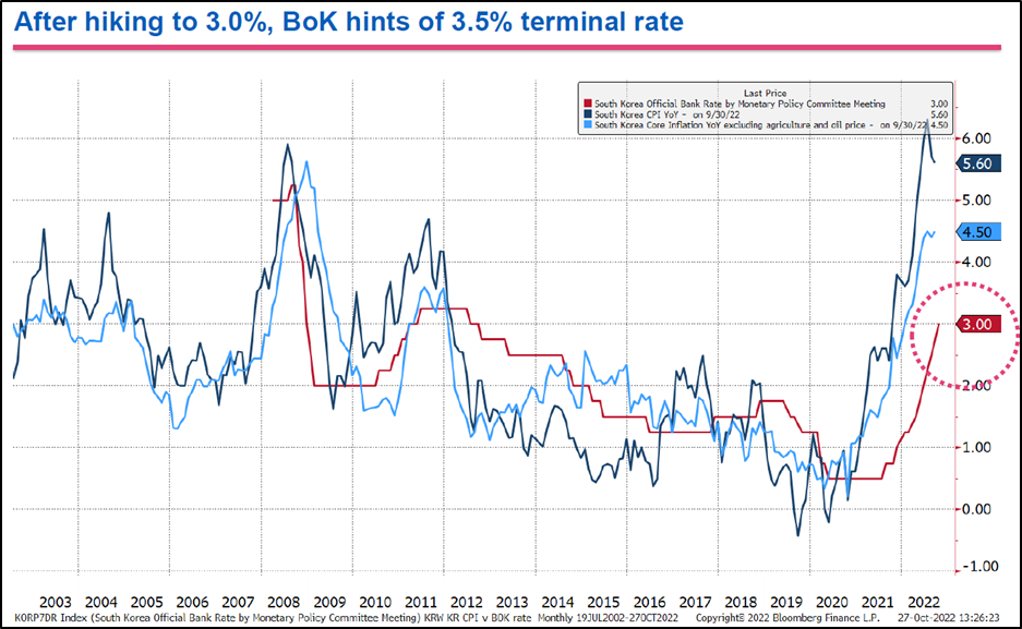 - 따라서, 은행은 한국은행이 국내의 여러가지 이슈에 불구하고 11월 금통위에서 빅스텝 인상을 단행할 것으로 전망함.