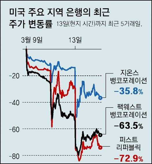 - SVB는 파산하기 직전에 보유한 美 장기 국채에 대해 160억달러의 미실현 손실을 보유하고 있었음. 그러나 고객의 자금 인출이 늘어나자 손실을 감수하고 채권을 매각했고, 이후 유동성 확보에 실패해 파산했음. 이는 이와 유사한 상황에 있는 은행들에 대한 우려를 부추겼음.