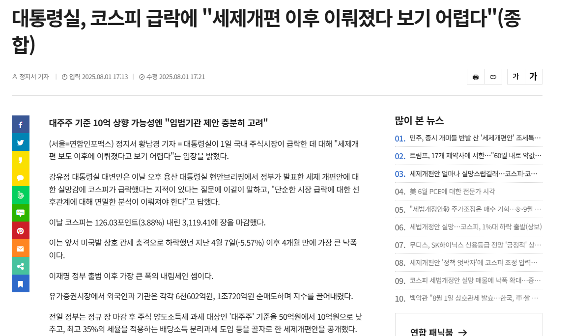 코스피 5천 Project vs. 증세(그들의 표현에 따르면 세율 정상화)
